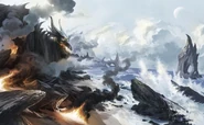 Argonnessen was a sanctuary for dragons in the aftermath of the war with the fiends and Overlords. About 60,000 years ago, the dragons began to emerge from the continent to spread across Eberron, encountering a number of emerging civilizations, the largest of which were the giants. Some dragons shared their knowledge with these new civilizations, while others conquered large swathes of the world. However the conquering dragons and the rivalries and competition between dragons created by the conquests caused the Daughter of Khyber to stir, leading the Conclave to put an end to the draconic expansions.[7]